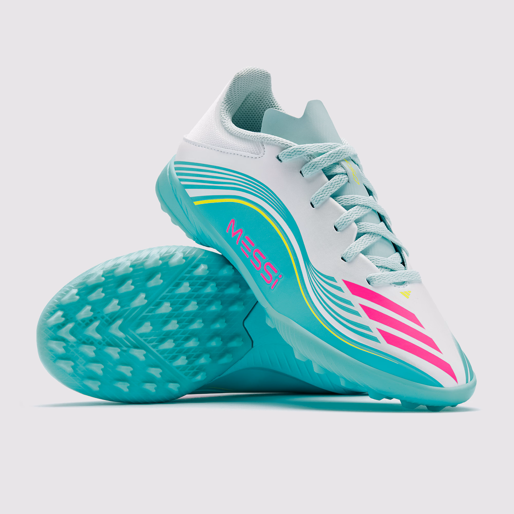 היא חזרה, והיא מהירה מתמיד. מחוץ למצעדים לתאוצה, ה-F50 חוזרת ומוכנה להפחיד את ההגנות שוב. הנעל האייקונית עוצבה מחדש באמצעות טכנולוגיה קלת משקל עדכנית, כאשר adi כווננה אותה להתפרצויות מהירות בזווית כמו גם למהירות בקו ישר. ב-TF, ספוג EVA קפיצי בסוליית הביניים ממקסם את ההנעה עבור אותן תנועות מהירות ומכריעות שמטרידות את היריבים, בעוד שדלפק העקב החיצוני המייצב שומר עליכם מאוזנים ובשליטה כשאתם מזנקים דרך הפערים. מהדורת Messi, המותאמת להעדפותיו של ליאו, כוללת חלק עליון מזמש סינתטי ורדיד אלומיניום HybridTouch עם 3 פסים מעוצבים לתוספת מבנה ותמיכה, יחד עם לשון צפה להתאמה נוחה.