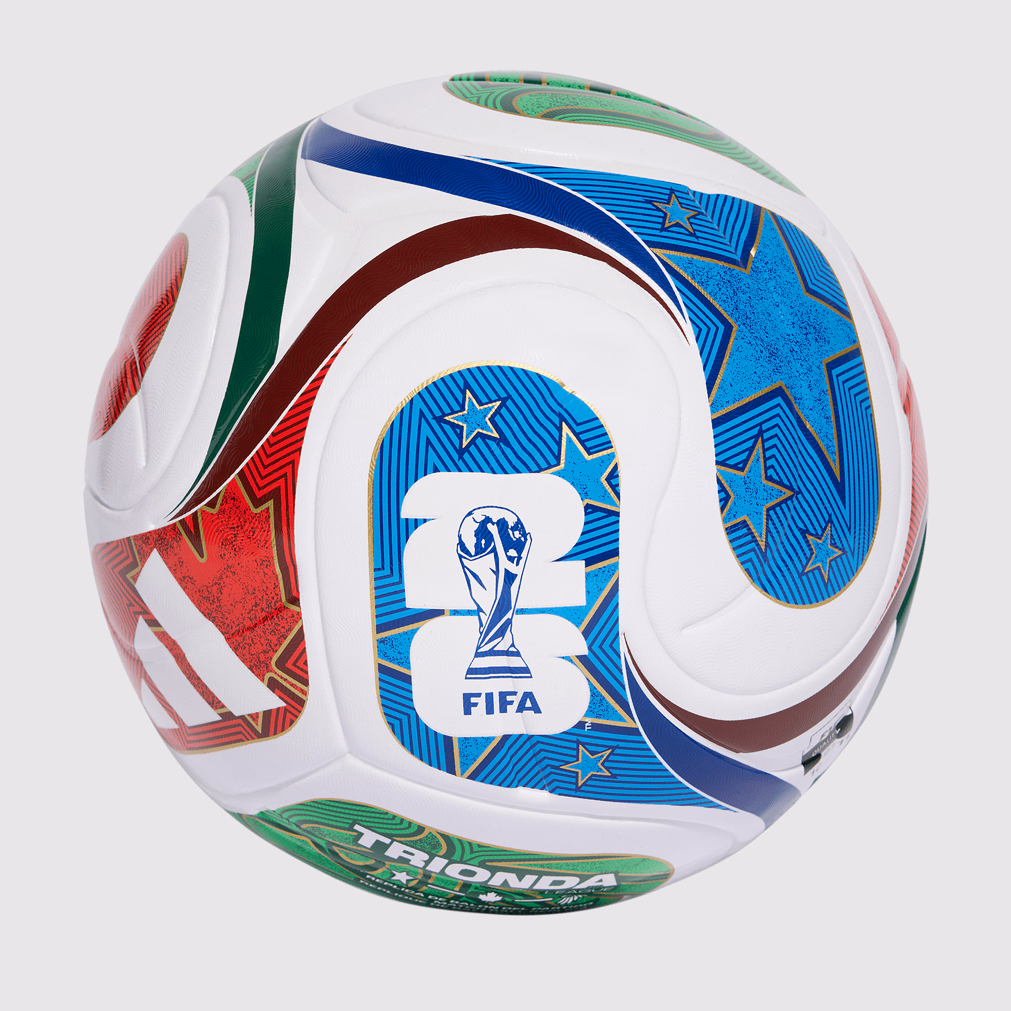עם הגעת גביע העולם לצפון אמריקה בפעם הראשונה מזה יותר מ-30 שנה, מאז אליפות ארה"ב ב-94', כדורגל הכדורגל הרשמי "טריונדה" מחווה למדינות המארחות הן בשמו והן בעיצובו. "טרי" מרמז לשלוש מארחות הטורניר, ו"אונדה" (גל בספרדית ובפורטוגזית) מעורר את תנועת הנפנוף המקסיקני האייקוני "לה אולה" המבוצע על ידי האוהדים כשהם מקדמים את ארצם לגדולה מהיציע. בסיס לבן קלאסי מכוסה בעיצוב מסתחרר בשלושה צבעים, עם גרפיקה כחולה המציגה את הכוכבים והפסים של דגל ארה"ב, גרפיקה אדומה המציגה באופן בולט את עלה האדר האייקוני של קנדה, וגרפיקה ירוקה המעוטרת בנשר המקסיקני האגדי המשמש כמרכז דגל המדינה וסמל המדינה של פדראציון מקסיקנה דה פוטבול אסוציאסיון. בהתבסס על הכדורים בהם השתמשו אלופות העולם ודרום אמריקה המכהנות, ארגנטינה, אלופת אירופה ספרד, מחזיקת גביע הזהב של CONCACAF, מקסיקו, ושחקנים כמו מחזיק כדור הזהב, אוסמנה דמבלה, למין ימאל, דקלן רייס וליונל מסי, כשהם מתחרים על הפרס הגדול ביותר בכדורגל העולמי. כדורגל ליגת הטריונדה עוזר לכם לבצע את המיטב שלכם בכל פעם שאתם עולים למגרש. מעטפת חלקה יוצרת צללית חלקה שמפחיתה את התנגדות האוויר, ומעניקה לכדור מהירות מושלמת וקיפול באוויר, חיוניים לזריקות חזקות לטווח ארוך ולגבשות חזקות. מבנה ה-TSBE מציע עמידות מעולה ואזור מגע עקבי, כך שתוכלו לספוג נגיעות עדינות, למסור ולנוע בביטחון רב יותר מאי פעם. שלפוחית הבוטיל החזקה יכולה לעמוד במכות באימונים ובמשחקים אינטנסיביים מבלי לאבד אוויר, וגימור למינציה על המעטפת ממזער את ספיגת המים כדי להבטיח ביצועים שיא גם בגשם.