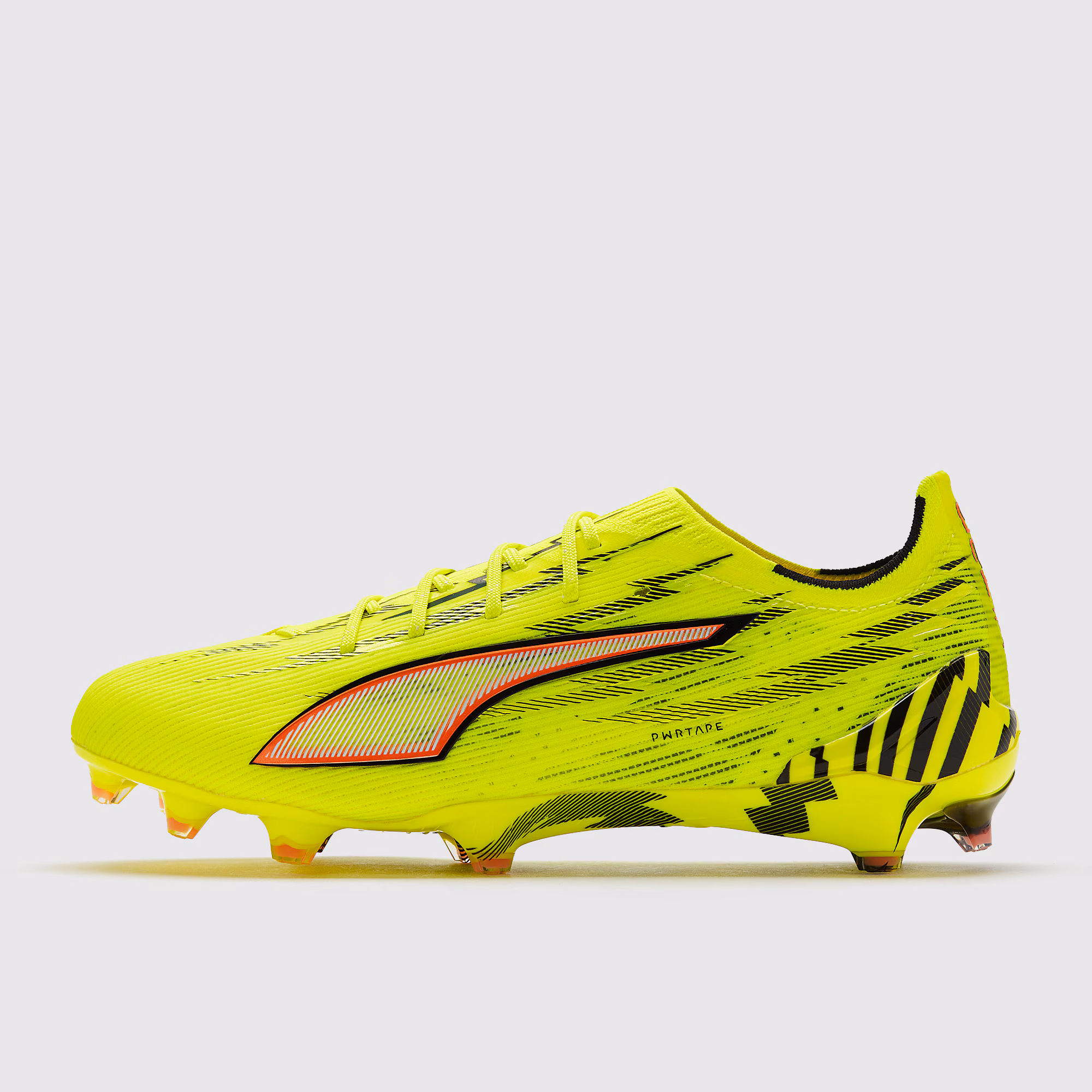 עם חלק עליון מכוון מחדש המציע ביצועים טובים עוד יותר, ה-Ultra 6 מציב אתכם בעמדת הפול פוזישן בכל דו-קרב. השדרוגים המרכזיים הם רשת קלת משקל, הכוללת מרקם GripControl Pro משולב לכדרור בטוח בקצב, וצורת שלדת התמיכה PWRTAPE SQD שעוצבה מחדש. יחד, הם מספקים יציבות שאין שני לה, לא משנה כמה מהר אתם נוסעים, כך שכאשר אתם נמצאים בכל סוג של מרוץ ספרינט, יש רק מנצח אחד. מהדורת Ultimate כוללת שוב את סוליית SPEEDSYSTEM של PUMA לאחיזה והנעה מעולים. הסוליה, שפותחה לאחר מחקר מקיף על יעילות ההאצה, הבלימה והחיתוך במגרש הכדורגל, מצוידת בנעלי FastTrax, מה שהופך אתכם למהירים יותר מהקו ובשינוי כיוון. בעקב, מדובר במערכת של שלושה נעצים – בדיקות הראו כי נעילה בקו האמצע יעילה יותר לבלימה, מושלם להפתעת יריבים בעצירות פתאומיות.