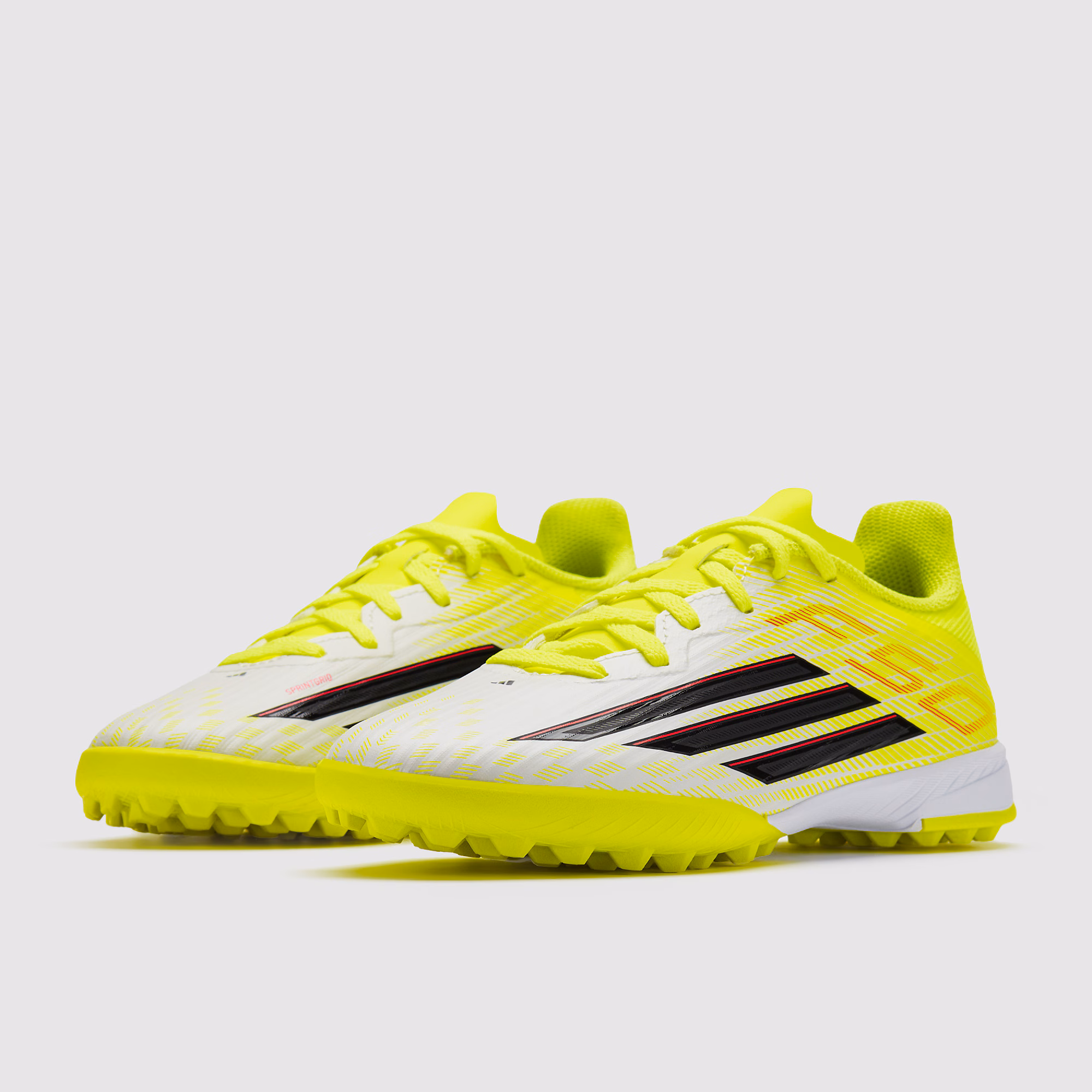 היא חזרה, והיא מהירה מתמיד. מחוץ לטבלאות התאוצה, ה-F50 חוזרת ומוכנה להפחיד את ההגנות שוב. הנעל האייקונית עוצבה מחדש באמצעות טכנולוגיה קלת משקל עדכנית, כאשר adi כווננה אותה להתפרצויות מהירות בזווית כמו גם למהירות בקו ישר. ב-TF, ספוג EVA קפיצי בסוליית הביניים ממקסם את ההנעה עבור אותן תנועות מהירות ומכריעות שמטרידות את היריבים, בעוד שדלפק העקב החיצוני המייצב שומר עליכם מאוזנים ובשליטה כשאתם מזנקים דרך הפערים. בהתבסס על המורשת הקלה במיוחד של ה-F50, חלק עליון של Fiberskin מספק תחושה יעילה, ומציע תמיכה רק היכן שאתם זקוקים לה כדי לשמור על נוחות מבלי להאט אתכם. הדפסת Sprintgrid 2D האחיזה משפרת את מגע הכדור לכדרור במהירויות גבוהות, והיא נמשכת עד הבוהן לדיוק רב עוד יותר. הגרסה עם השרוכים כוללת לשון מנהרה גמישה, העוטפת את כף הרגל לנעילה מעולה, בעוד הריפוד הארגונומי סביב הקרסול תוכנן במיוחד כדי למזער גירוי.